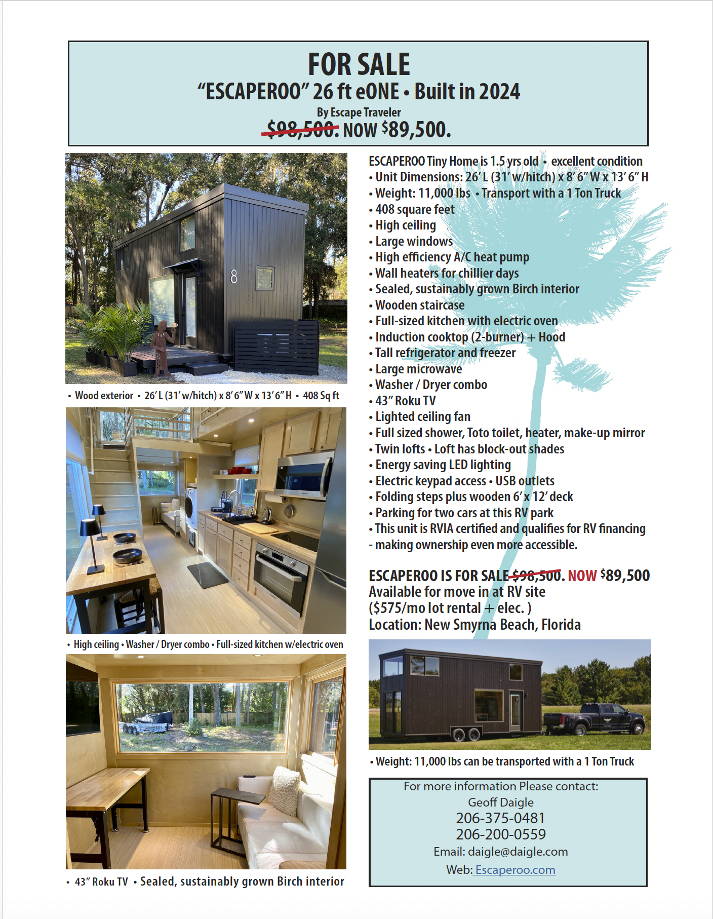 ESCAPEROO Tiny Home is 1.5 years old and in excellent condition