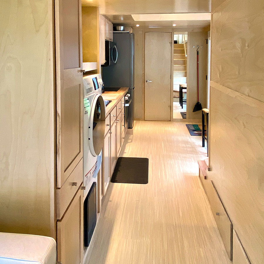 Hallway to kitchen, washer/dryer combo