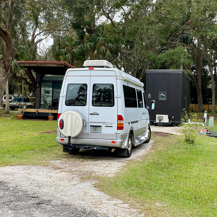 Basic parking for two vehicles at Gold Rock Campground in New Smyrna Beach.