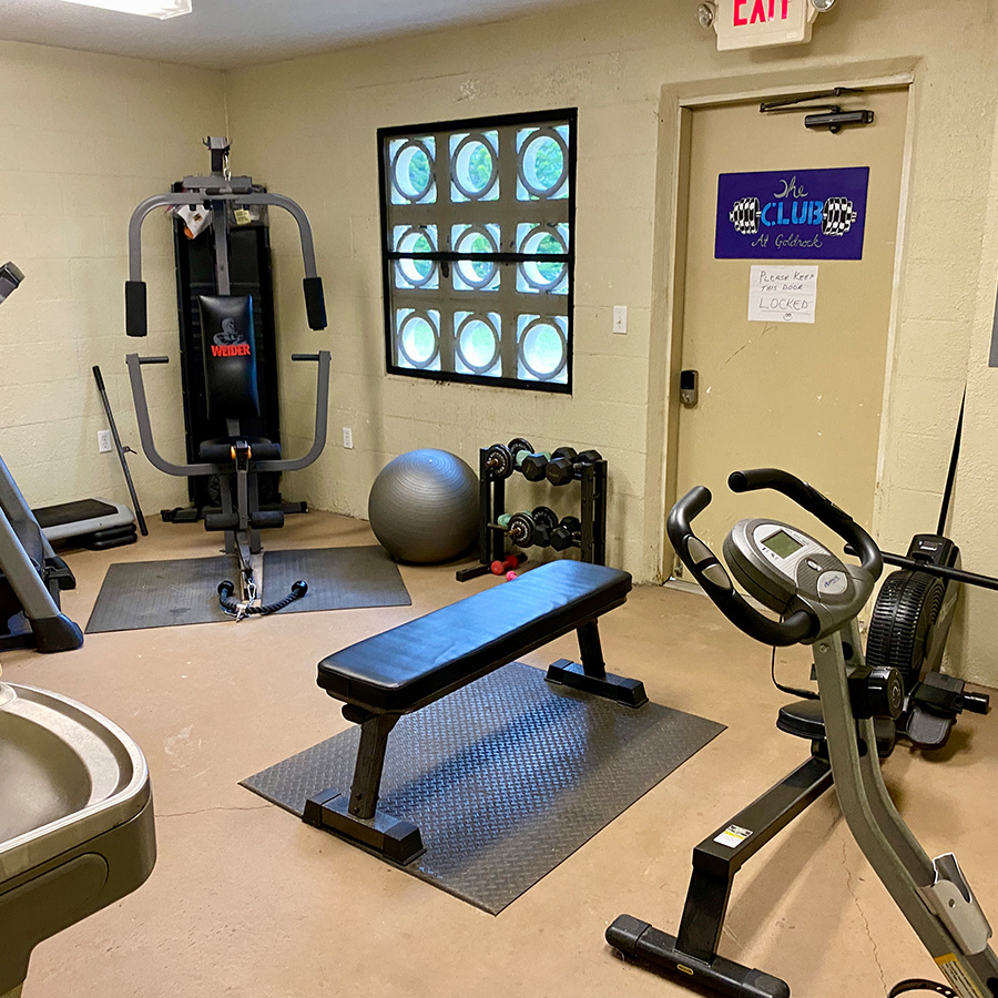 Exercise equipment next to the Postal Room and laundry facility.