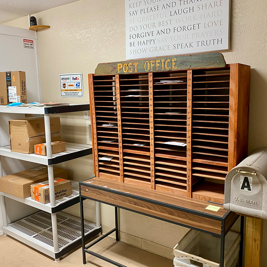 Postal Room for mail and packages.